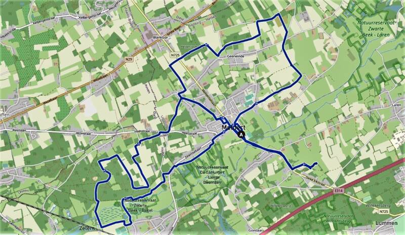 Start: OC Kalendries, Meldertsebaan 2, 3560 Meldert (deelgemeente van Lummen) Limburg