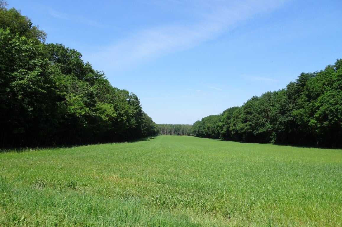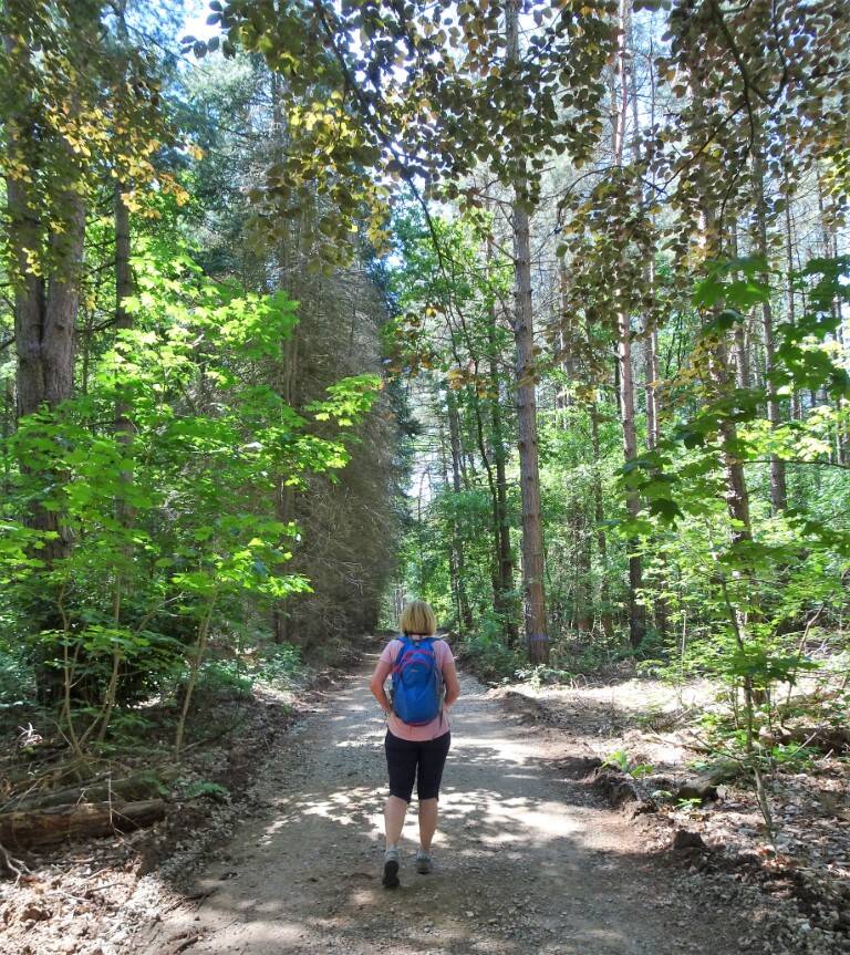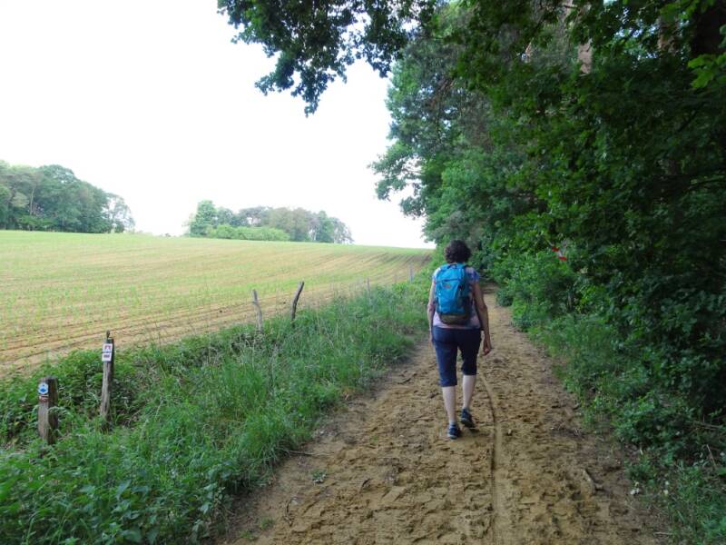 We gaan verder langs uitgestrekte velden lichtjes bergop naar de beboste Hertenrodeberg.