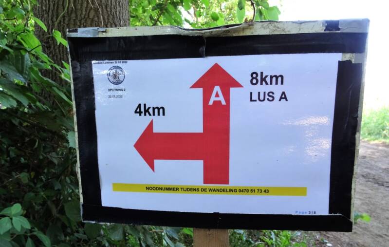 Er zijn 2 lussen. Lus A: 8 km en lus B: 10 km. Beiden lussen kunnen aan 4 km ingekort worden.
