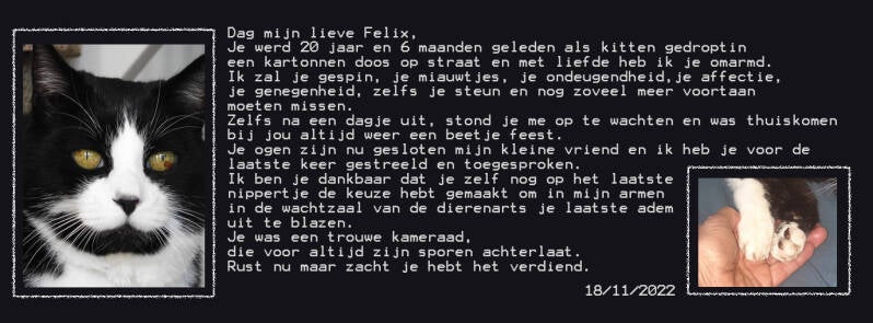 En wat gevreesd werd, is ook waarheid geworden. Felix is dezelfde avond gestorven 😥.