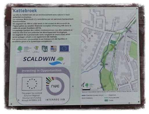 In dit park zie je aan de zomerbar de street-art van Guinguette Fabiola. We volgen een eindje de 'Molenbeek'.