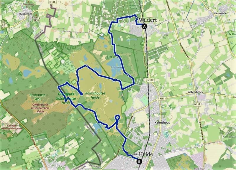 Na een korte aanloop van 700 m, zitten we al in het groen van de Wildertse Duintjes.