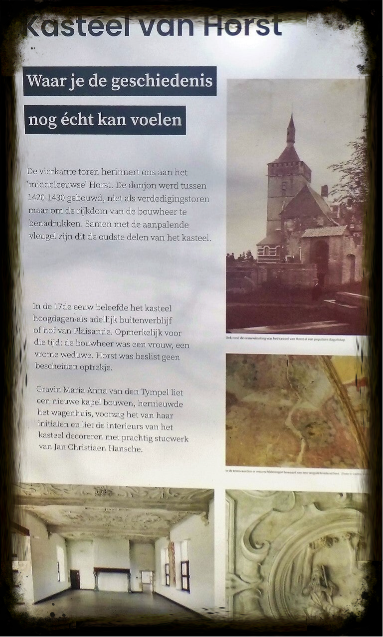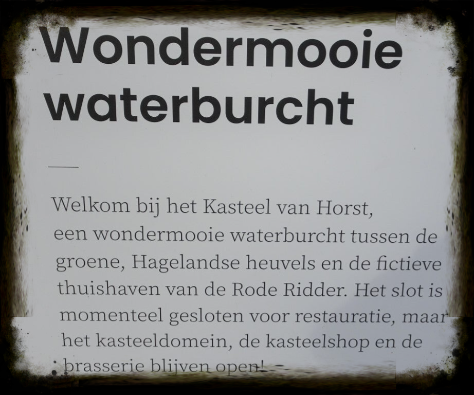 Na 16 km komen we aan bij het Kasteel van Horst. Blijkbaar is dit de streek van de Rode Ridder!