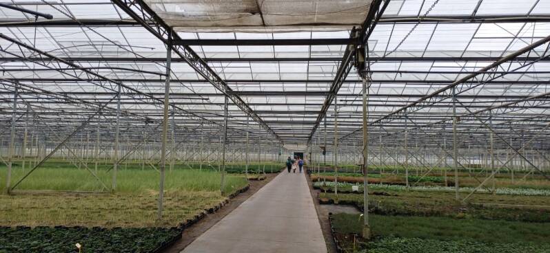 We lopen over en door veel privéterreinen, zoals hier gaan we zelfs de serres van De Rijtak Spirulina Microalgenboerderij in.
