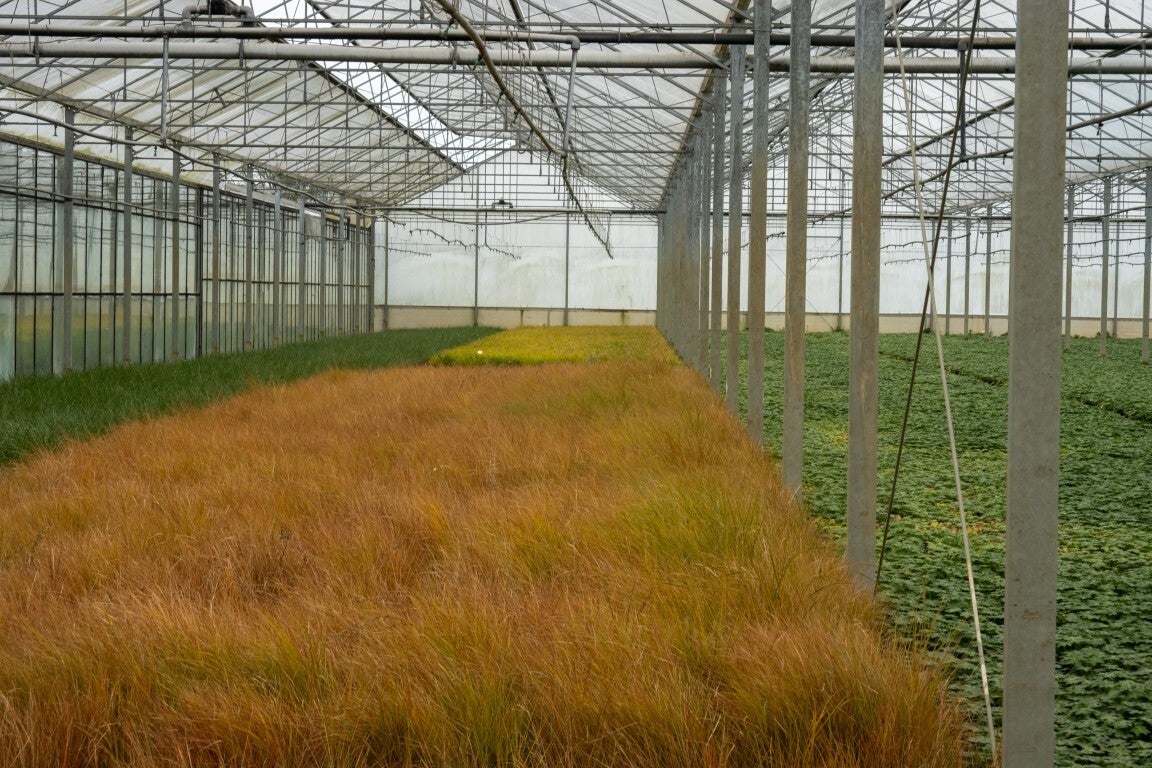 Rijtak startte in 2021 met microalgen op kleine schaal. Begin dit jaar besloten ze een paar tomatenrijen te vervangen door Spirulina-kweek.